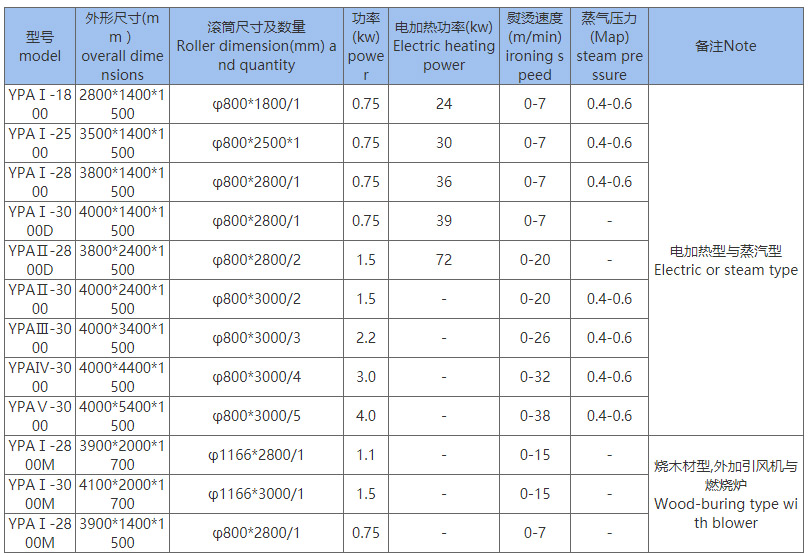 一、燙平機主要技術參數(Main Technical specifications)